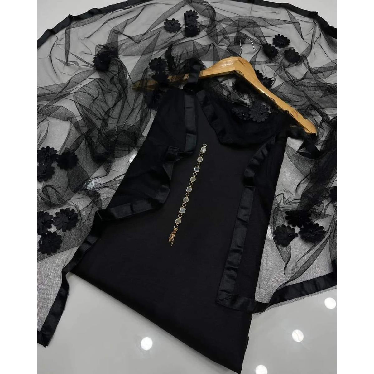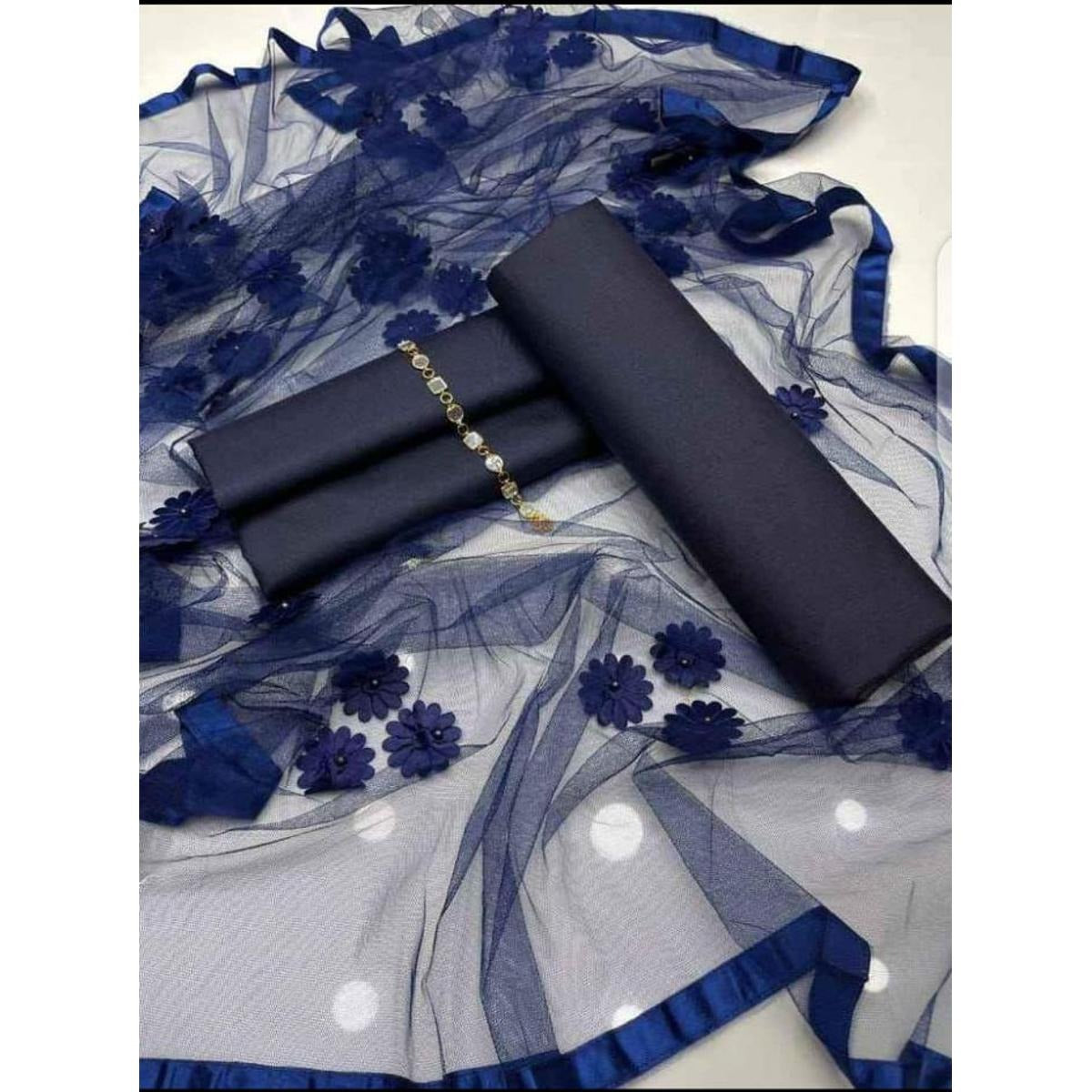 Rubika Fashion Most Hit Unstitched 3 Piece Collection Katan Silk Plain Shirt & Trouser With Net Dupatta For Women Dress for women